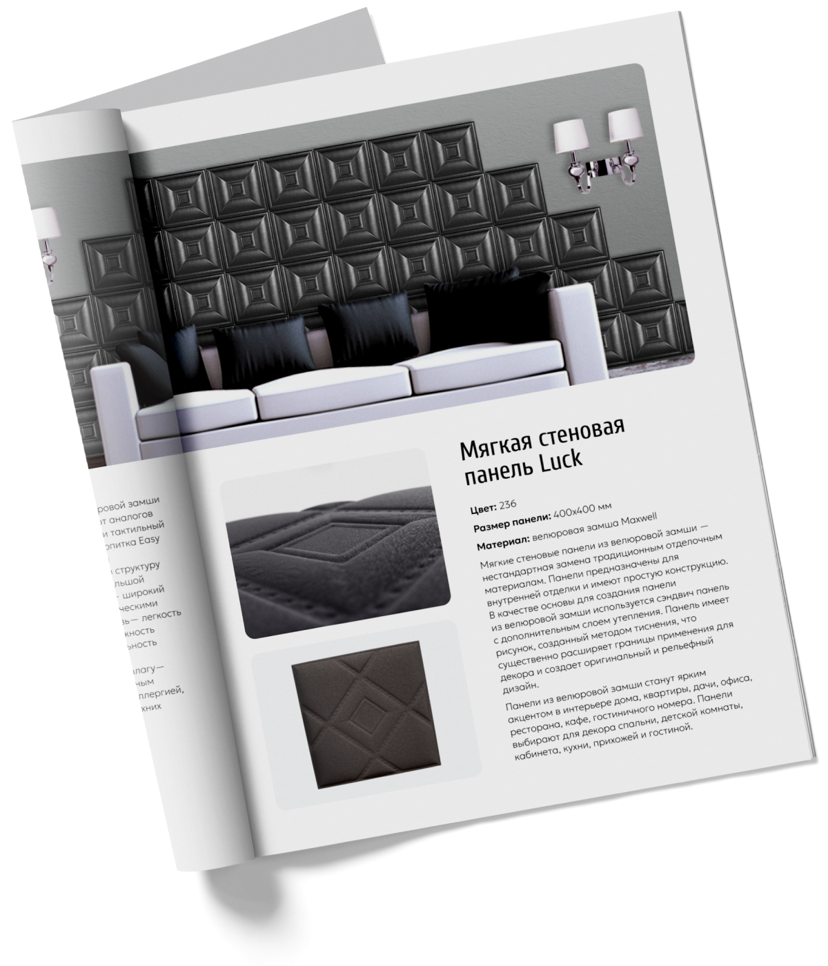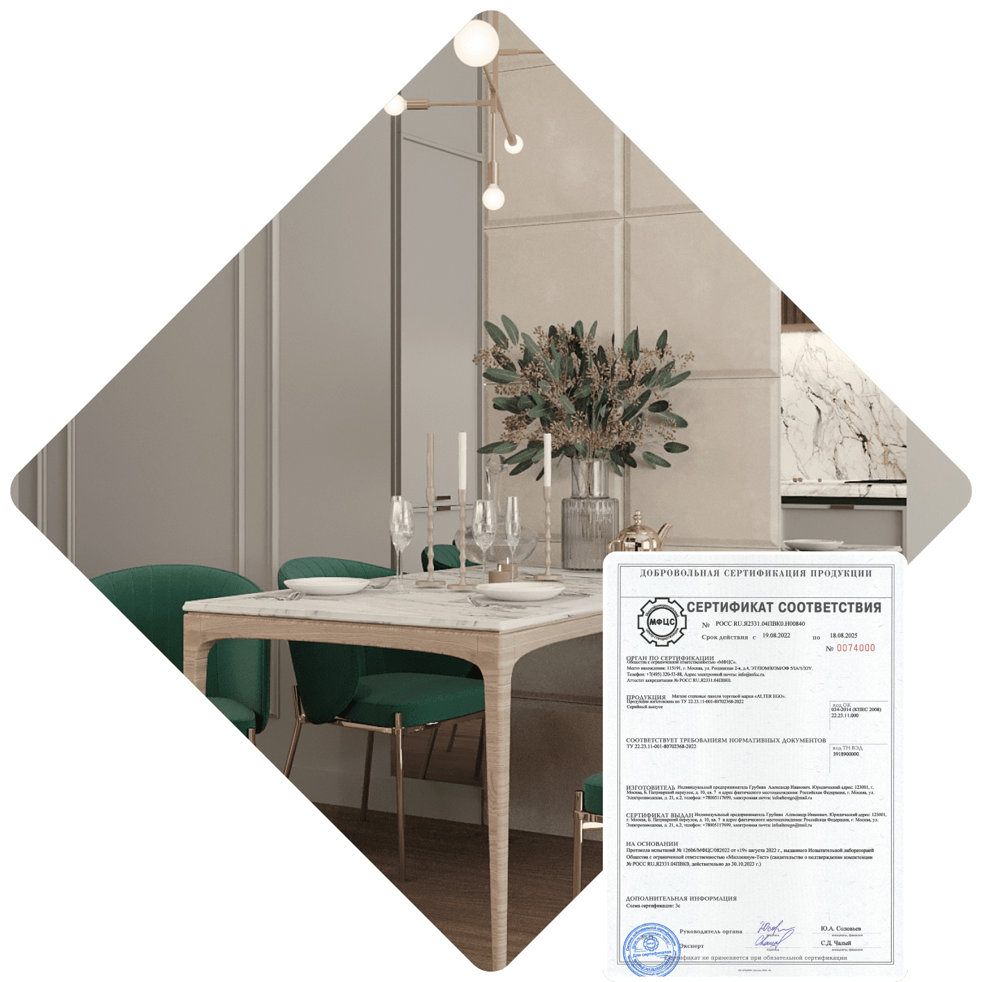 Наши панели отличаются высоким качеством материалов, элегантным дизайном и долговечностью. Они успешно прошли международный тест на истирание по Мартиндейлу и показали отличный результат – 100 000 циклов. Мы заботимся о здоровье наших клиентов и используем только экологически чистые, безопасные материалы, которые не вызывают аллергии и не выделяют вредных веществ.